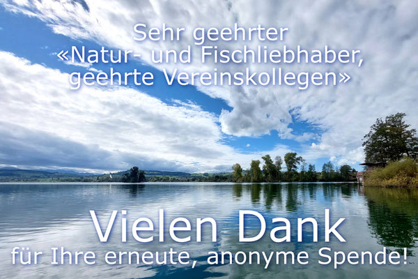 Vielen Dank für die erneute, grosszügige Spende von Ihnen als Natur- und Fischliebhaber und Ihren Vereins-Kollegen!